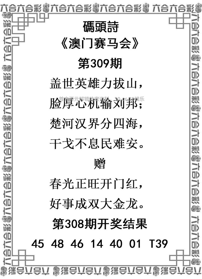 309期:解析:春光解出春肖虎兔龙,大金龙解出金肖猴鸡 |